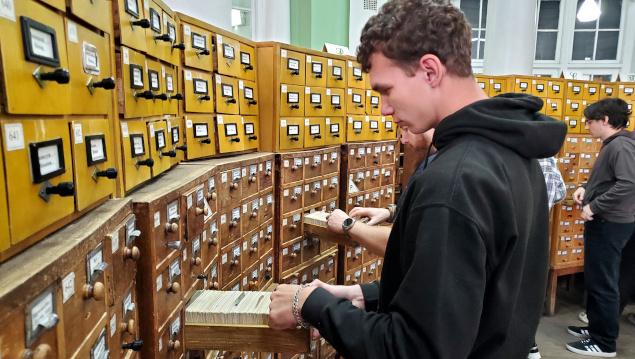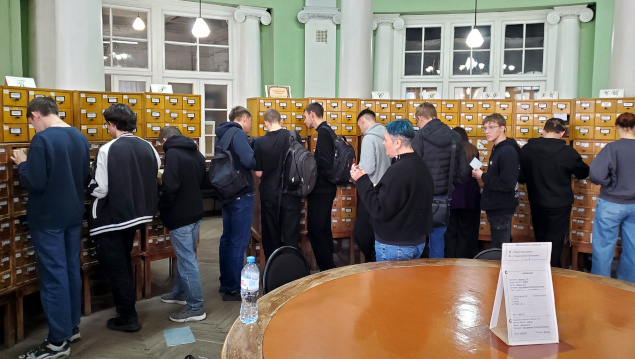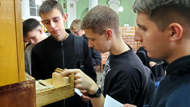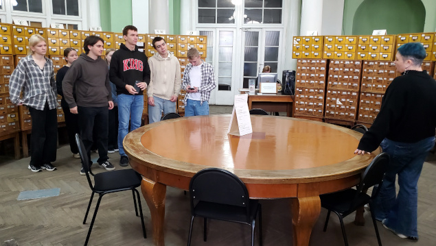 Студенты познакомились с общими правилами пользования библиотекой, организацией карточных каталогов (алфавитных, систематического), системой поиска и заказа книги. Отдельный этап экскурсии был посвящён электронным каталогам и базам.