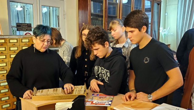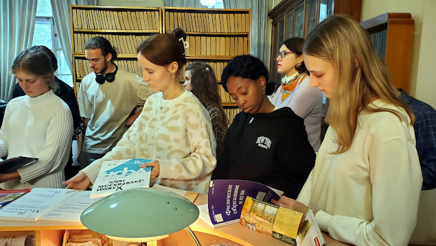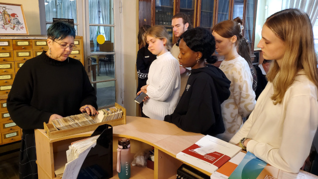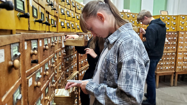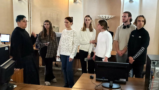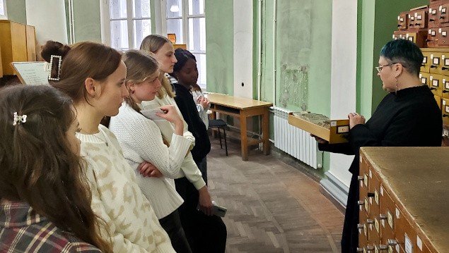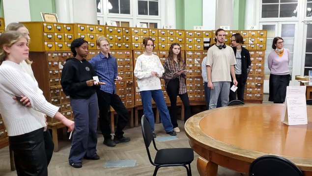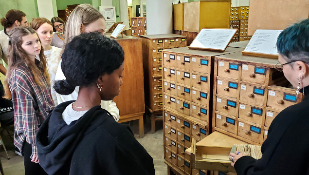 Студенты познакомились с общими правилами пользования библиотекой, организацией карточных каталогов (алфавитных, систематического, персоналий), системой поиска и заказа книги. Отдельный этап экскурсии был посвящён электронным каталогам и базам.