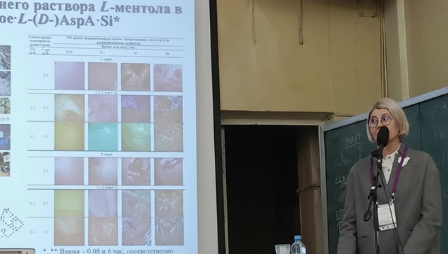 Заведующая кафедрой полимеров на базе ООО «АКРИПОЛ», профессор, д.х.н. Шиповская Анна Борисовна выступила с пленарной лекцией на тему: «Противоионная ассоциация как способ получения хиральных биологически активных наночастиц аспарагината хитозана». Лекция осветила вопросы самоорганизации в полимерных средах, основное внимание уделялось разработке полифункциональных биопрепаратов на основе полиэлектролитных наночастиц для высокотехнологичного растениеводства.