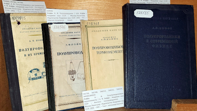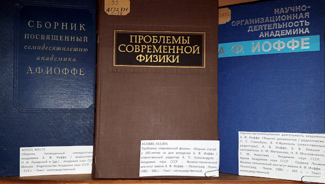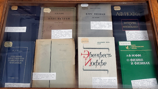 Также выставка знакомит читателей с учебником для вузов «Курс физики», подготовленным А. Ф. Иоффе в соавторстве с другими физиками