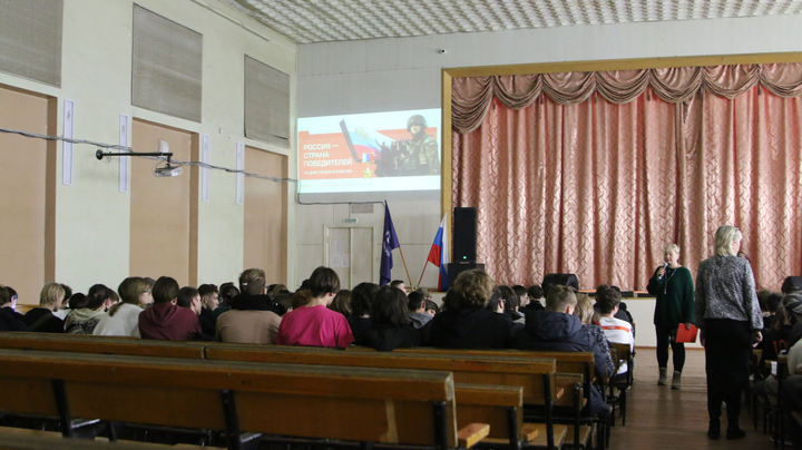 9 декабря 2025 года в Большом актовом зале Колледжа радиоэлектроники имени П.Н. Яблочкова прошел классный час для студентов 1-3 курсов из цикла мероприятий проекта «Разговоры о важном». Тема классного часа – «Россия — страна победителей. Ко Дню Героев Отечества».