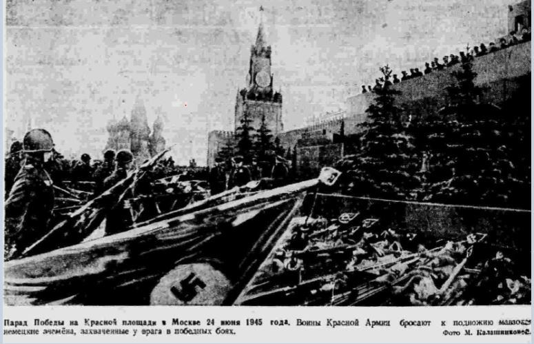 В историческом параде Победы принимал участие "бывший саратовский колхозник капитан Гриев. С первого дня войны он на фронте. В дни разгрома немцев под Москвой он первым на танке ворвался в город Волоколамск и с тех пор дошел от подмосковной речки Истры до Германии", написал коореспондент газеты "Правда" 25 июня 1945 г. (об этом же в "Известиях" 26 июня 1945 г.) [13, 14].