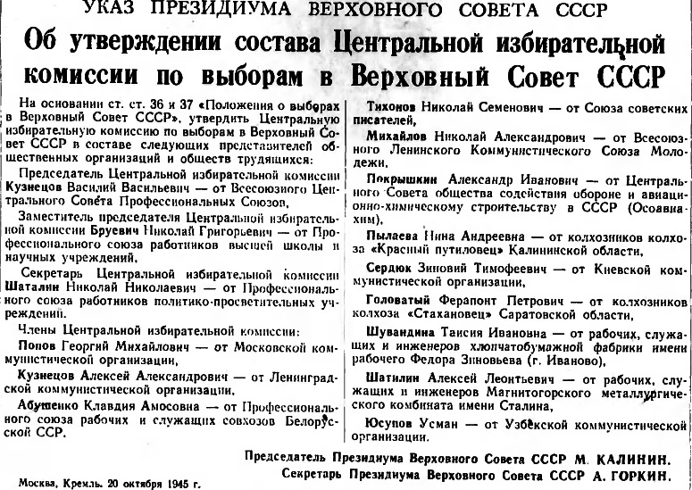 Этот же указ можно найти в газете «Правда» от 21 октября 1945 года на первой странице.