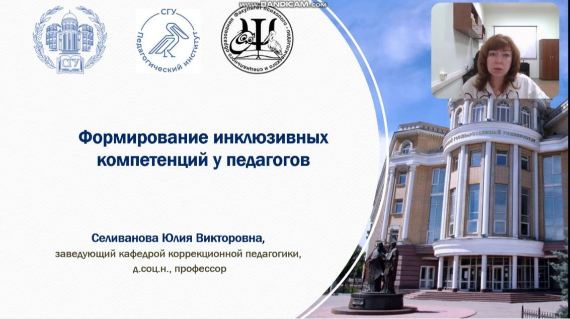 С пленарным докладом на тему «Формирование инклюзивных компетенций у педагогов» выступила заведующая кафедрой коррекционной педагогики факультета психолого-педагогического и специального образования, руководитель научного направления НЦ РАО В СГУ Ю.В. Селиванова.