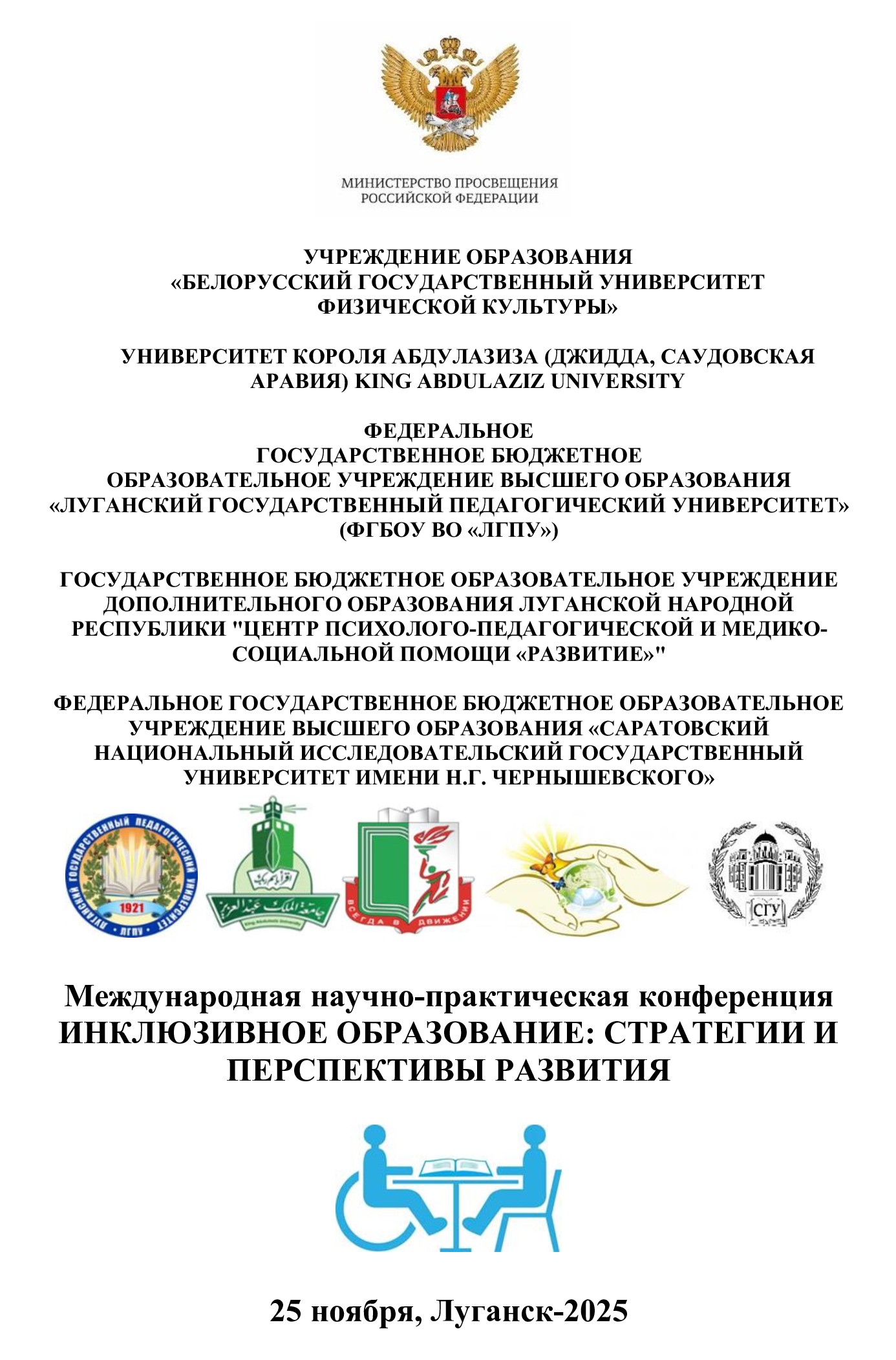 Конференция прошла в рамках реализации научно-исследовательской работы по государственному заданию Министерства просвещения Российской Федерации на 2025 год на тему «Проектирование индивидуальных образовательных маршрутов студентов с ОВЗ в формирующемся образовательном пространстве Луганской Народной Республики». Смешанный формат конференции объединил более 150 участников – учёных, педагогов, психологов, социальных работников и представителей органов власти из России, Беларуси, Узбекистана и Саудовской Аравии. В рамках работы пяти основных тематических секций были обсуждены актуальные вопросы подготовки кадров, социальной интеграции, инклюзивных педагогических условий, цифровых технологий и образования на протяжении всей жизни человека.