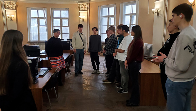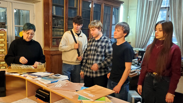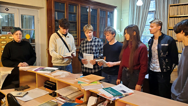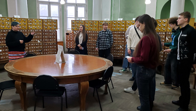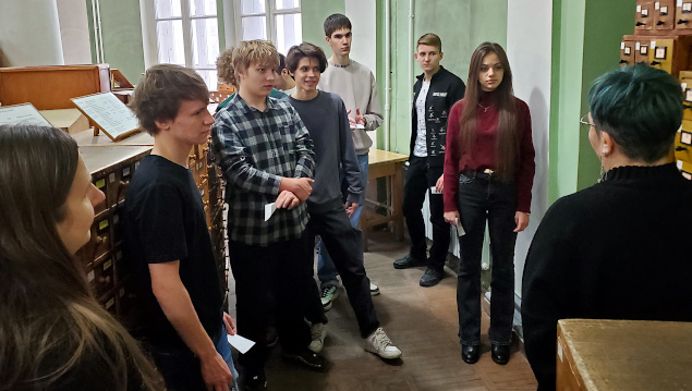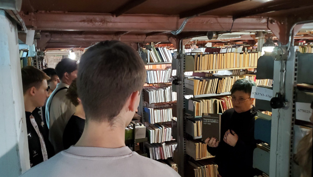 Студенты познакомились с общими правилами пользования библиотекой, организацией карточных каталогов (алфавитных, систематического, персоналий), системой поиска и заказа книги. Отдельный этап экскурсии был посвящён электронным каталогам и базам.