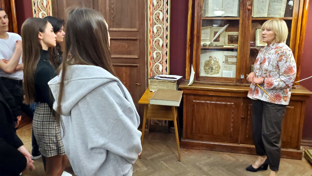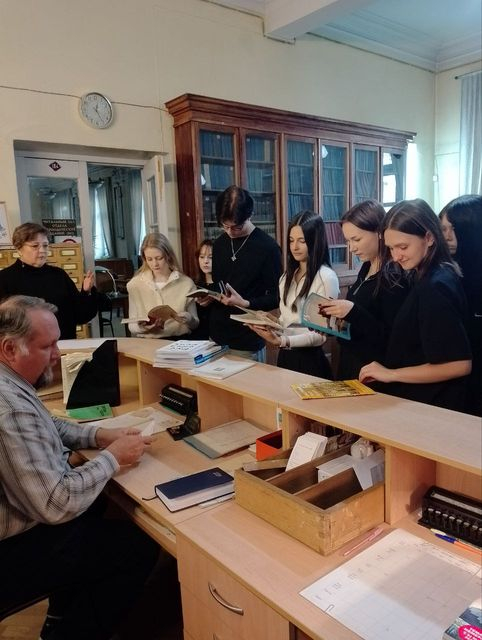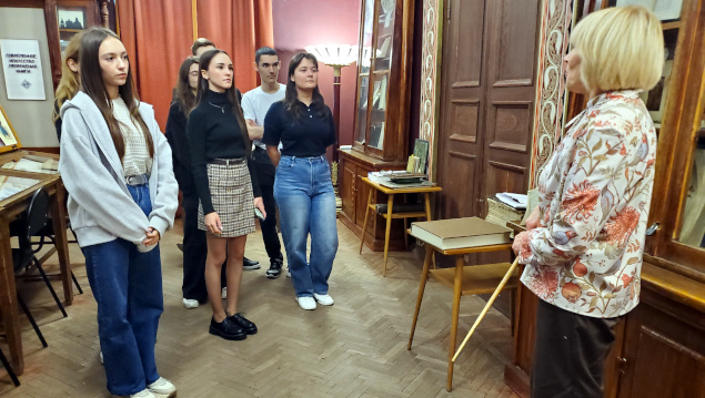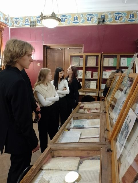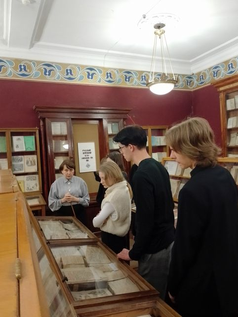 На выставке по истории русской книги студенты узнали об особенностях рукописных и старопечатных изданий, о журналах екатерининского, петровского времени и Серебряного века, увидели издания с автографами, познакомились с особенностями формирования фонда отдела редких книг и рукописей, услышали о коллекционерах-дарителях.