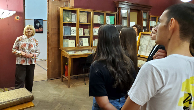 Экскурсии провели заместитель директора по научной работе ЗНБ СГУ Е. Б. Салькова и сотрудники отдела редких книг и рукописей С. В. Клеймёнова (заведующий сектором) и Е. Л. Иванова (главный библиотекарь).