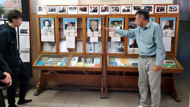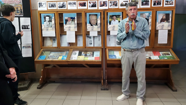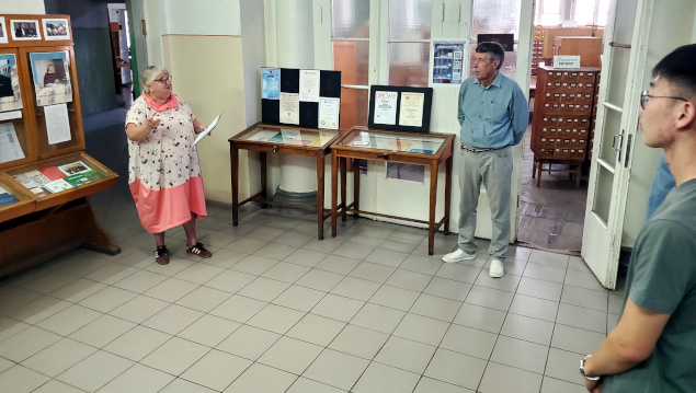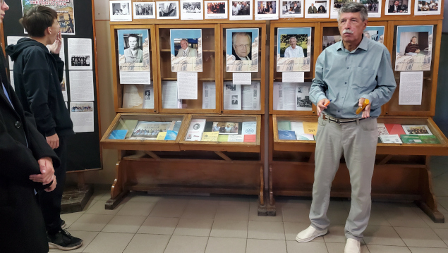 Главный библиотекарь отдела массовой работы Татьяна Владимировна Гордеева, подготовившая материалы выставки, подробно рассказала о представленном на выставке материале, отражающем славный путь кафедры физики твердого тела с момента основания до наших дней. На выставке представлена галерея портретов заведующих и старейших сотрудников кафедры и их труды.