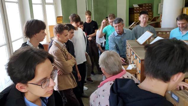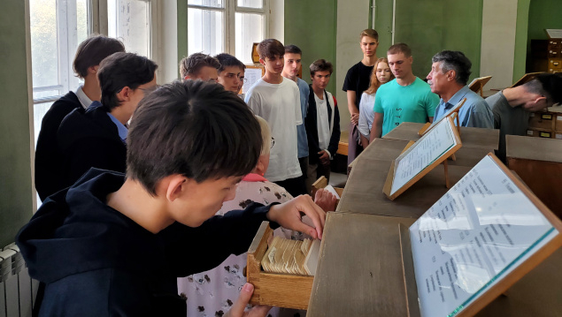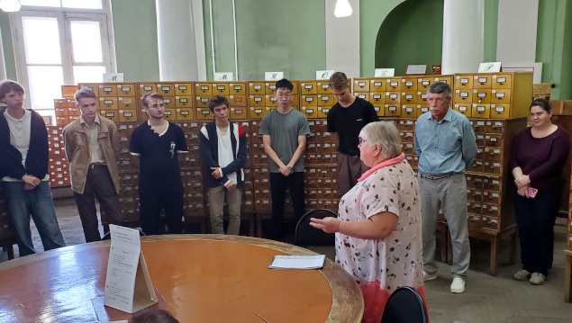 8 сентября в ЗНБ СГУ состоялась экскурсия для студентов, обучающихся на 1-м курсе Института физики по направлению «Электроника и наноэлектроника». Студенты посетили выставку «Кафедре физики твёрдого тела 80 лет», зал каталогов, «Выставку по истории русской книги».