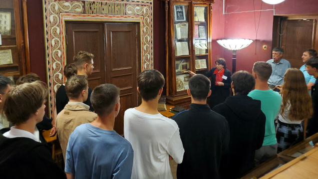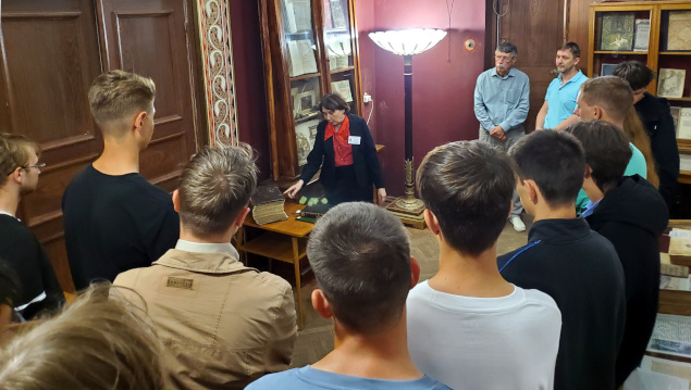 Следующим этапом знакомства студентов с уникальным библиотечным фондом стало посещение отдела редких книг и рукописей. Заведующий сектором отдела Светлана Викторовна Клейменова рассказала о старинных рукописях и изданиях первопечатника Ивана Фёдорова. Студенты также увидели издания эпохи Петра I, прижизненные издания произведений русских классиков XIX века и автограф А. П. Чехова. Студентам были представлены материалы выставки, посвящённой 435-летию основания Саратова. Студенты с интересом ознакомились с экспонируемыми материалами и поблагодарили руководство библиотеки за организацию интересной экскурсии.