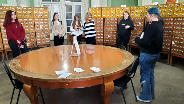 В книгохранилище и справочно-библиографическом отделе узнали о различных способах организации хранения фондов. В отделе периодических изданий студенты имели возможность увидеть научные и научно-популярные журналы, узнать структуру журнала как издания, алгоритм пользования читательскими алфавитными каталогами, а также об особенностях хранения газет.