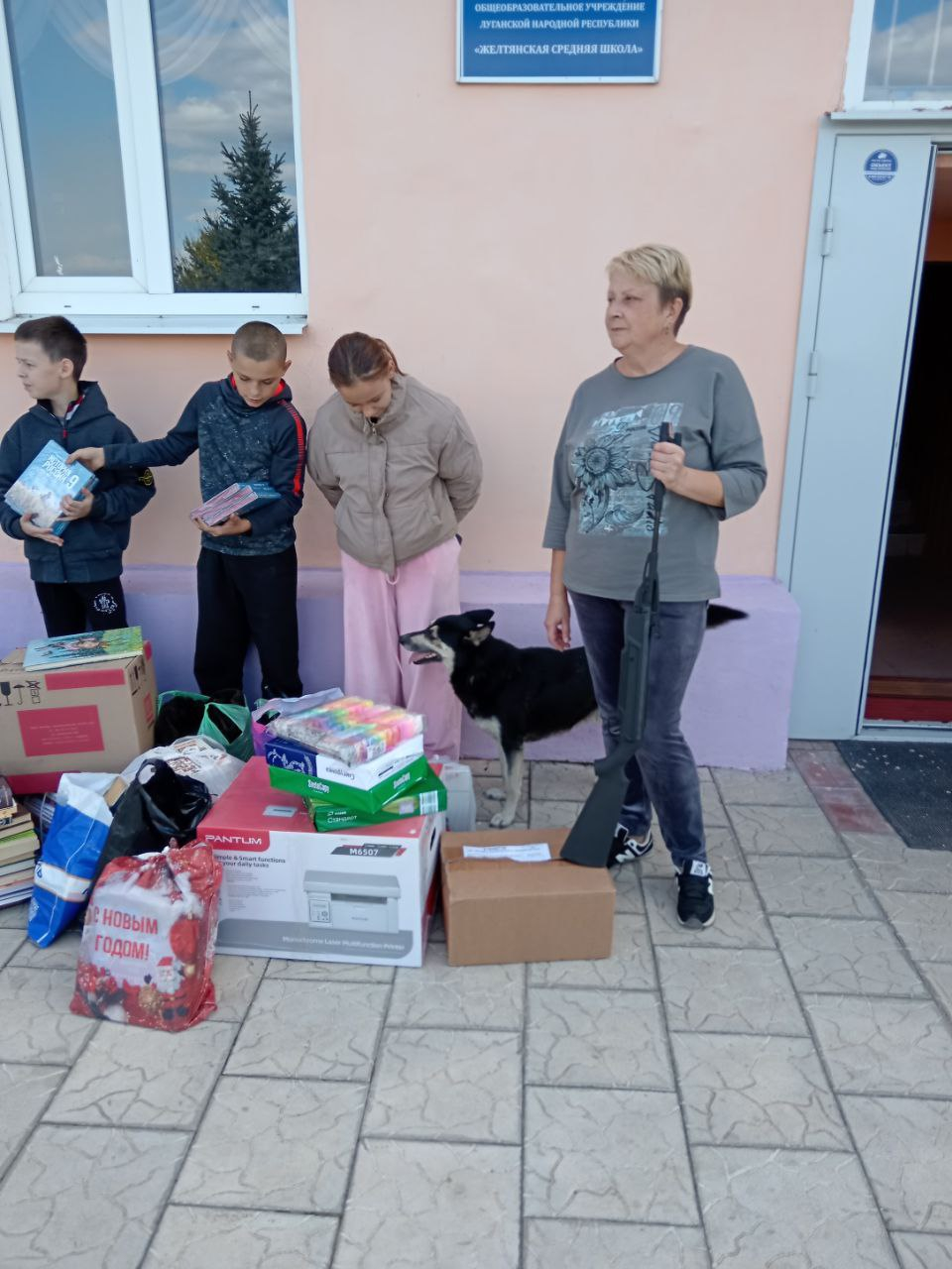 По заявке директора средней школы с. Желтое Славяносербского района ЛНР, были закуплены учебники по истории России и дисциплине «Вероятность и статистика», собраны канцелярские товары и произведения художественной литературы, переданы кофемашина и необходимая для занятий по «Начальной военной подготовке» пневматическая винтовка.