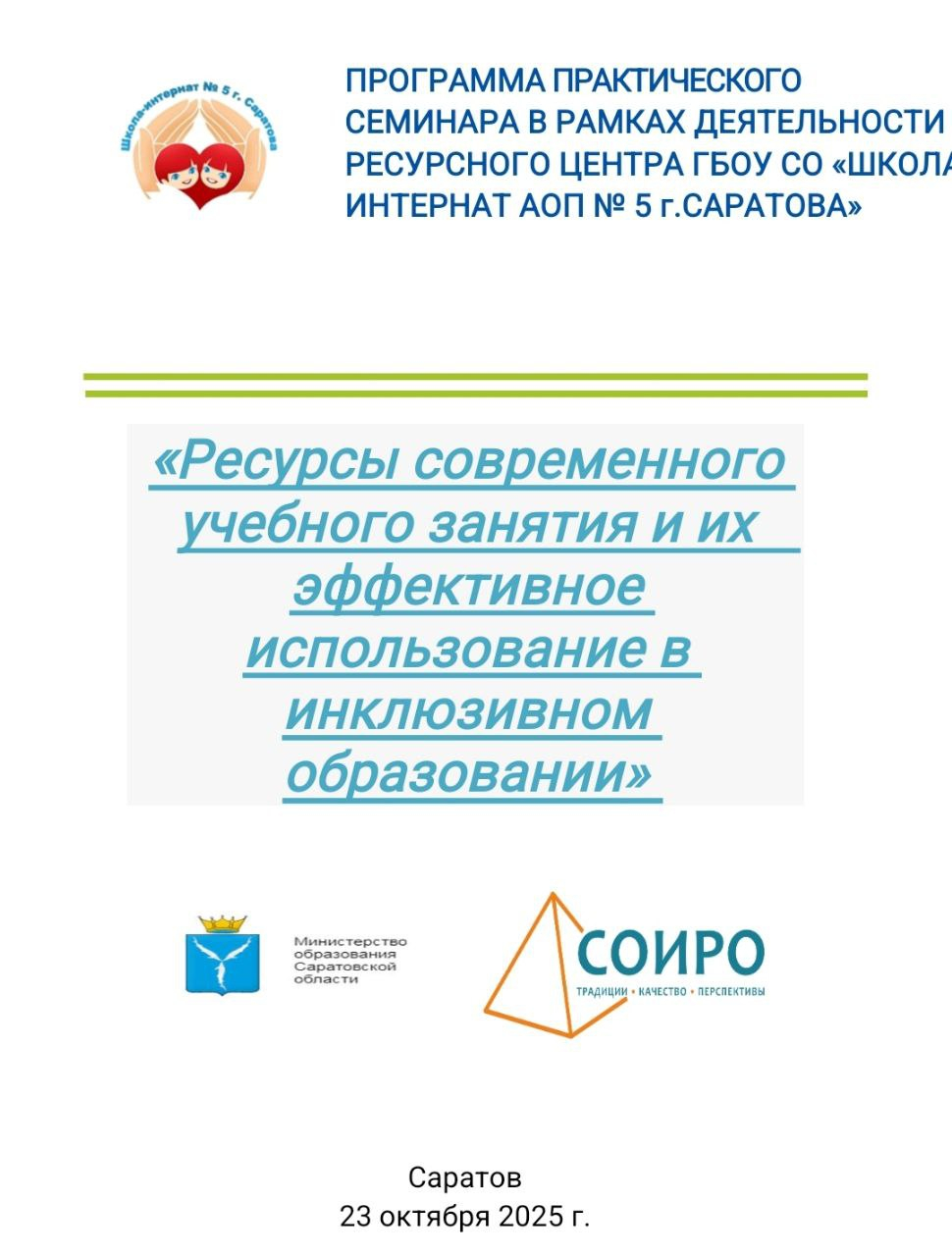 3 октября 2025 года студенты 3 курса, обучающиеся по направлению 44.03.03 «Специальное (дефектологическое) образование», профили «Олигофренопедагогика» и «Сурдопедагогика» и заведующий кафедрой коррекционной педагогики Юлия Викторовна Селиванова посетили областной семинар «Ресурсы современного учебного занятия и их эффективное использование в инклюзивном образовании» в ГБОУ СО «Школа-интернат АОП № 5 г. Саратова».