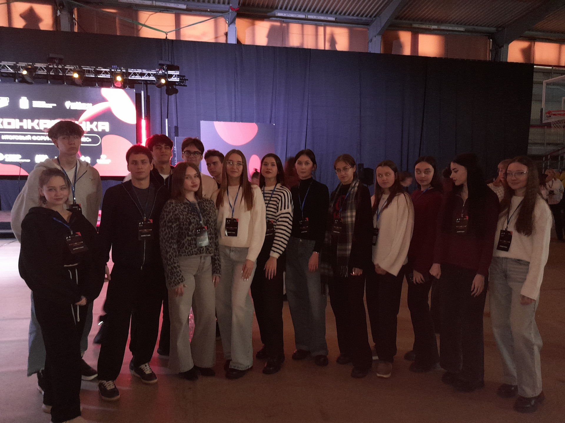 15 декабря 2025 года студенты 1‑го курса направления «Менеджмент» (группы 121 и 122) экономического факультета СГУ вместе с куратором, доцентом Голубевой С.С. стали участниками итогового форума «Конкретика‑2025», организованного центром «Мой бизнес».