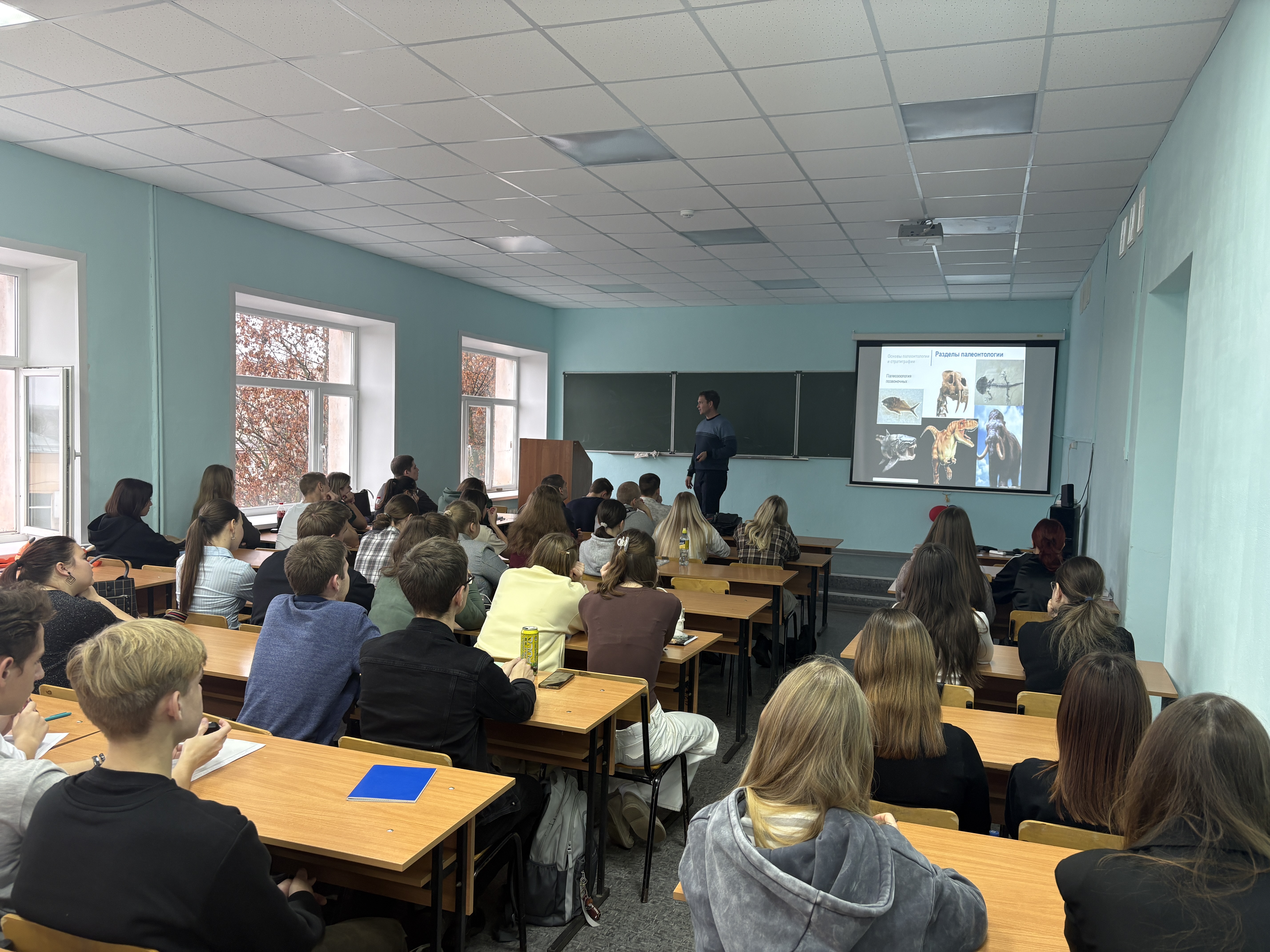 Далее А.Н. Володченко рассказал, как ученые занимаются поиском окаменелостей и их изучением. Слушатели узнали про роль томографии и трассологии в палеонтологии и антропологии, познакомились с процессом реконструкции вымерших организмов и воспроизведения климата и экосистем прошлых веков.