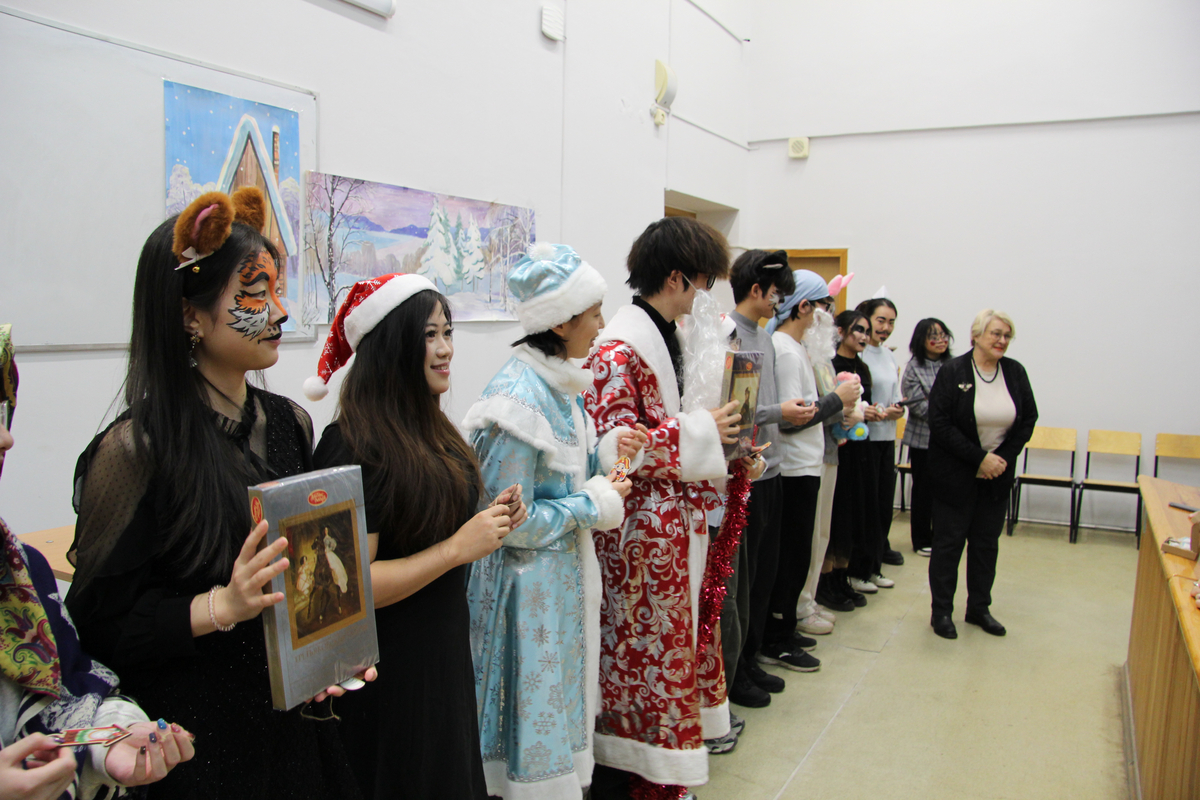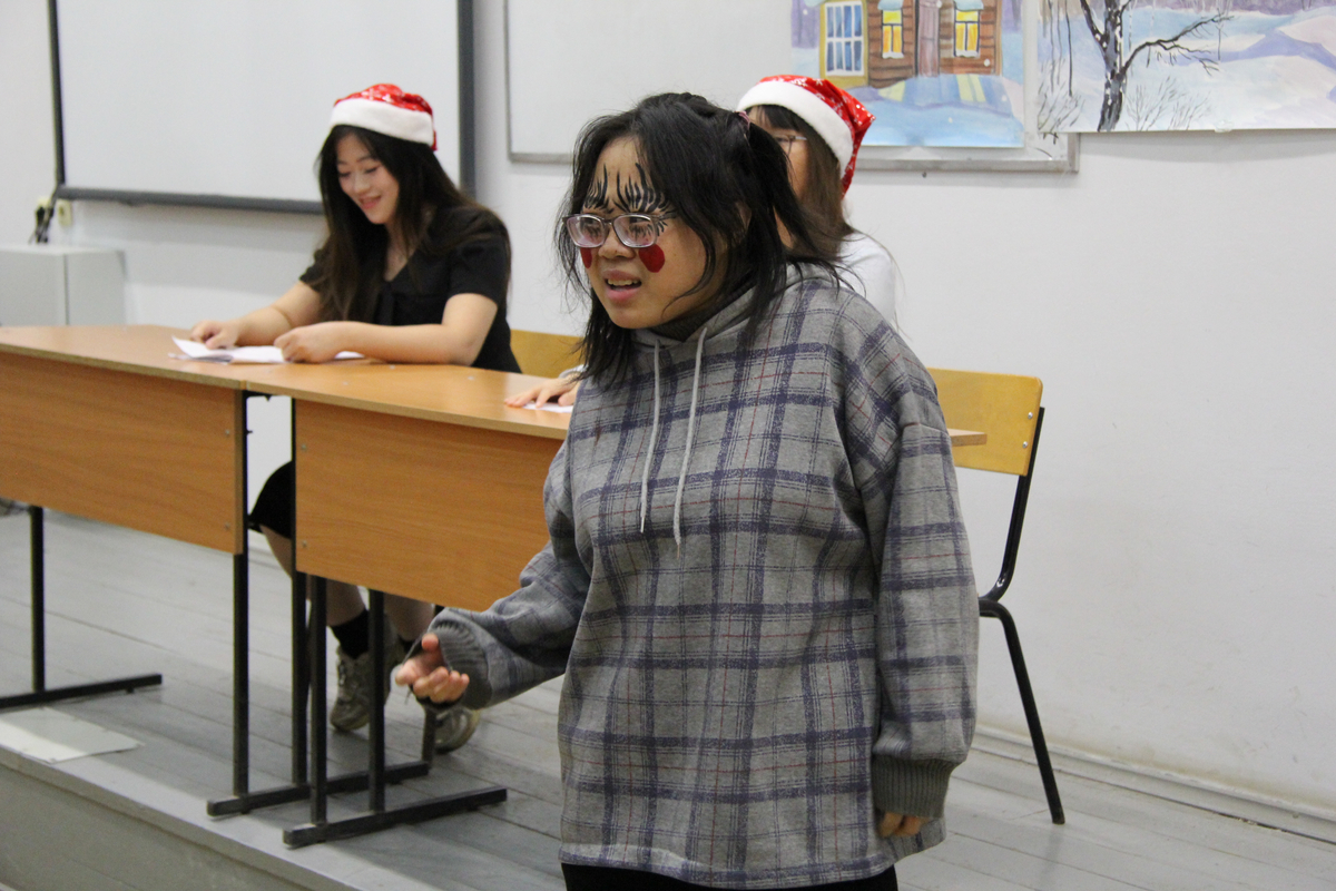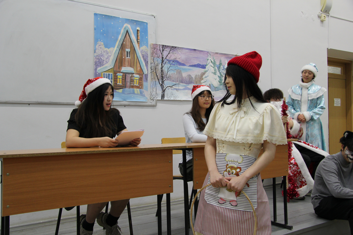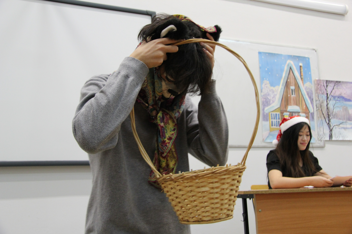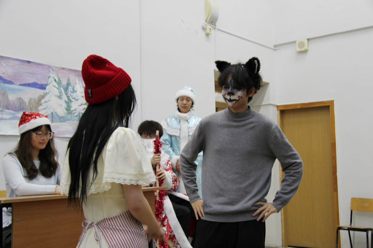 На импровизированной сцене студенты из Китая перевоплотились в сказочных персонажей и исполнили свои роли на русском языке. «Результатом русско-китайских репетиций стала весёлая, добрая фантастическая феерия с участием Деда Мороза и Снегурочки, лисы, волка, курочки Рябы, колобка, зайца, петуха, вороны и других героев. Самым главным результатом работы над спектаклем стало знакомство с русской культурой и крепкая дружба студентов двух стран», – отметила Татьяна Алексеевна.