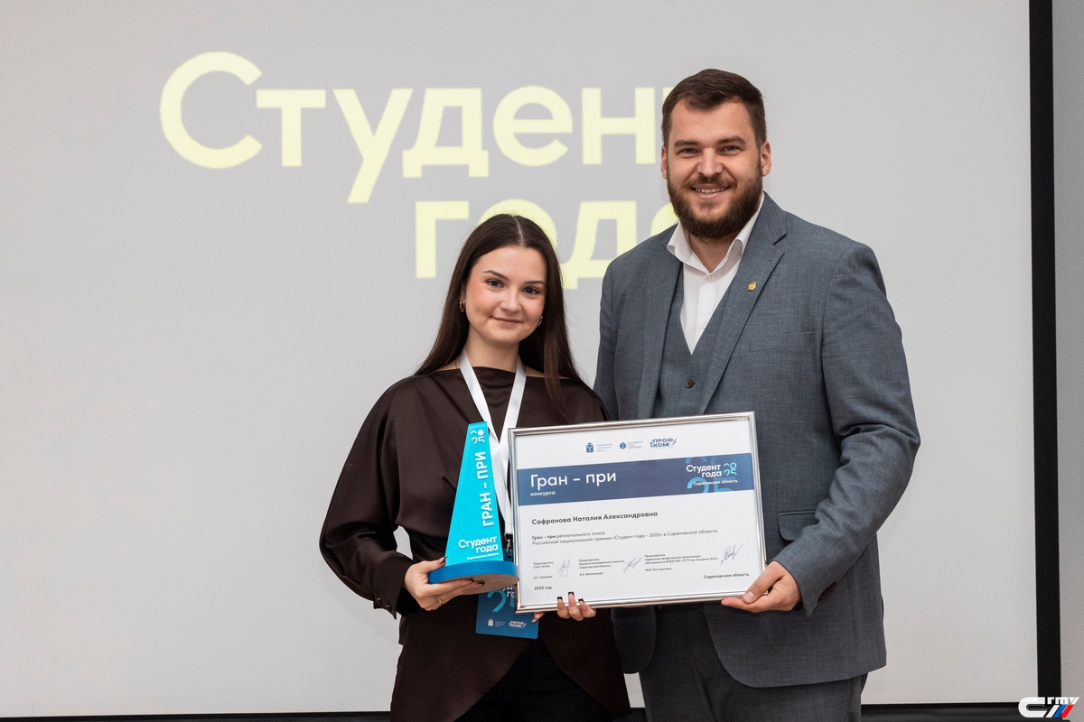 Студенты Саратовского университета продемонстрировали высокие результаты в девяти номинациях регионального этапа Российской национальной премии «Студент года». Особым достижением стало получение Гран-при. Обладателем главной награды стала студентка СГУ Наталия Сафронова.