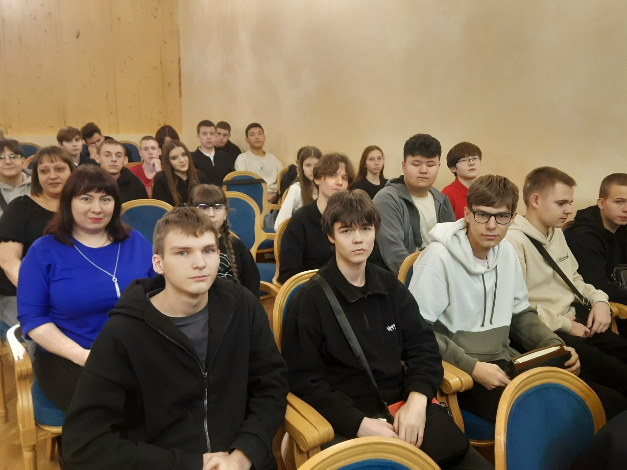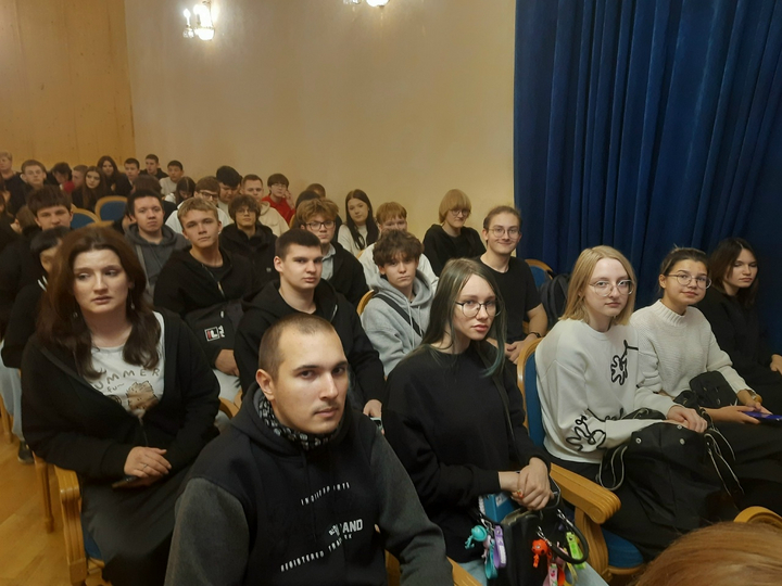 Мероприятие, в рамках реализации Государственной программы «Пушкинская карта», посетили более 100 человек из числа студентов групп первого года обучения 2142, 2132, 2161, 2151, 1181, 1171 вместе с заместителем директора по воспитательной работе и социальному развитию Ю.А. Селезневой и классными руководителями Т.Б. Никитиной, А.Н. Егоровой, О.А. Шаровой, Г.К. Уразовой, Е.В. Куприяновой и М.В. Рябоконенко.