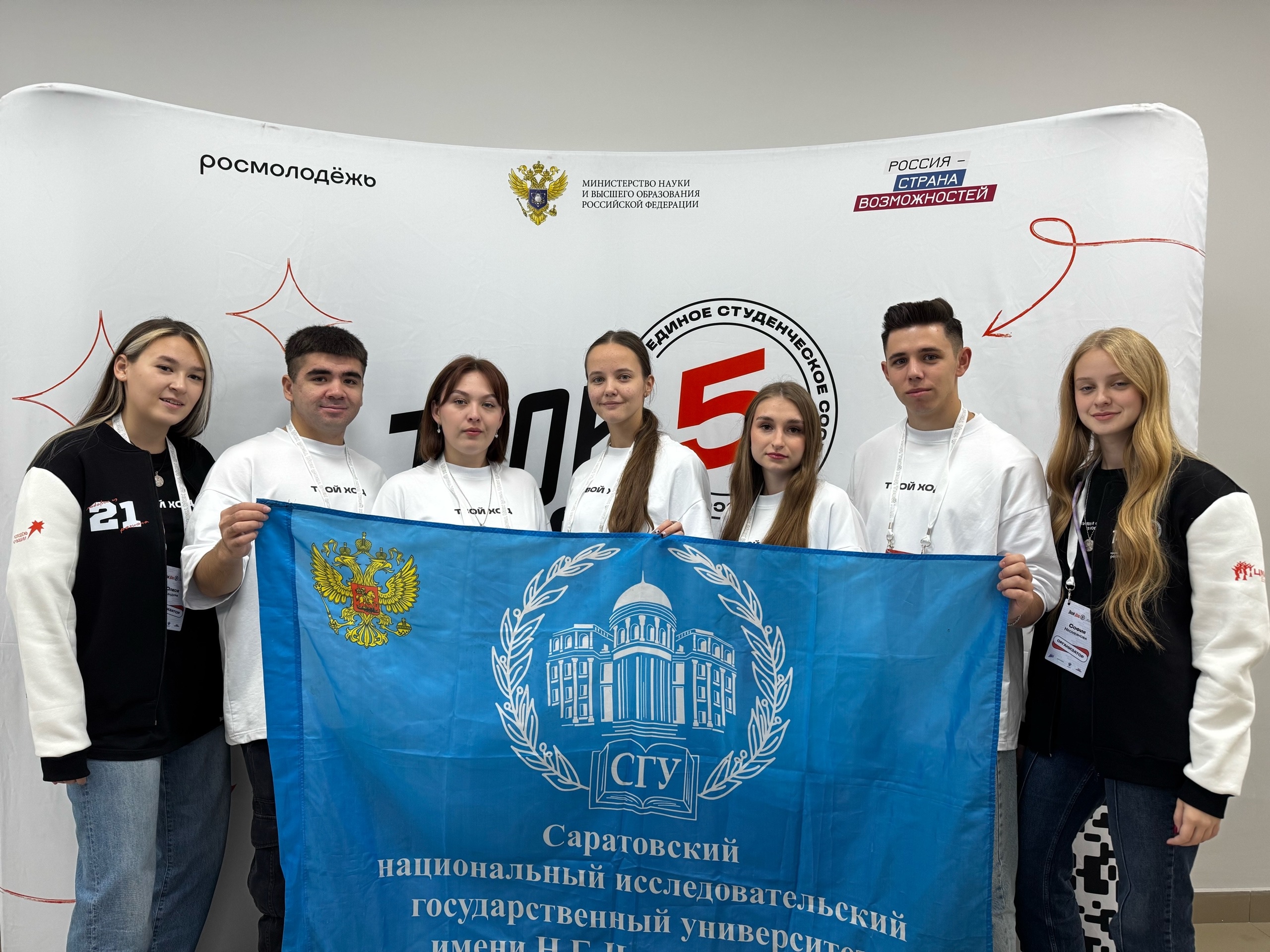 От Саратовского университета приняли участие: студент 4 курса факультета гуманитарных дисциплин, русского и иностранных языков Фарзод Кучкоров, студентка 4 курса юридического факультета Елена Коноплева, студентка 4 курса механико-математического факультета Ксения Дедюрина, студент 1 курса магистратуры Социологического факультета Владислав Быков, студентка 3 курса факультета физико-математических и естественно-научных дисциплин Дарья Чернова, студентка факультета искусств Анна Чернякова.