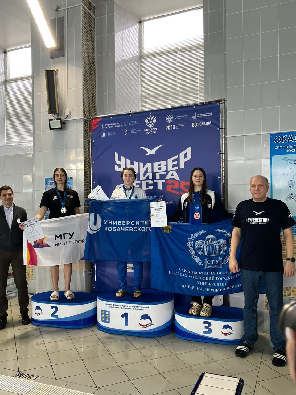 Сборная команда Саратовской области приняла участие во Всероссийском студенческом спортивно-патриотическом фестивале "УниверЛига фест 2025" среди юниоров и юниорок 17-25 лет. В Твери Саратовскую сборную представляли студенты СГУ (плавание, баскетбол 3х3 Девушки) и СГТУ (баскетбол 3х3 юноши, мини-футбол). Также наши спортсмены принимали участие в сдаче норм ГТО и викторине  (заняли 1 место).