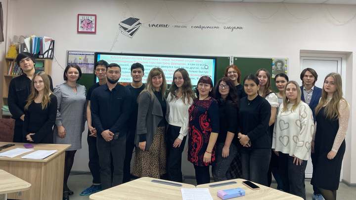 В рамках Марафона профессионального развития студенты 4 курса профилей «Русский язык. Литература» под руководством доцента кафедры филологических дисциплин Л.А. Мельниковой посетили МАОУ СОШ № 9 имени П.А. Столыпина г. Балашова. На ее базе учителями-словесниками К.В. Рощиной и Е.Е. Щербаковой была организована методическая гостиная «Урок литературы в ХХI веке».