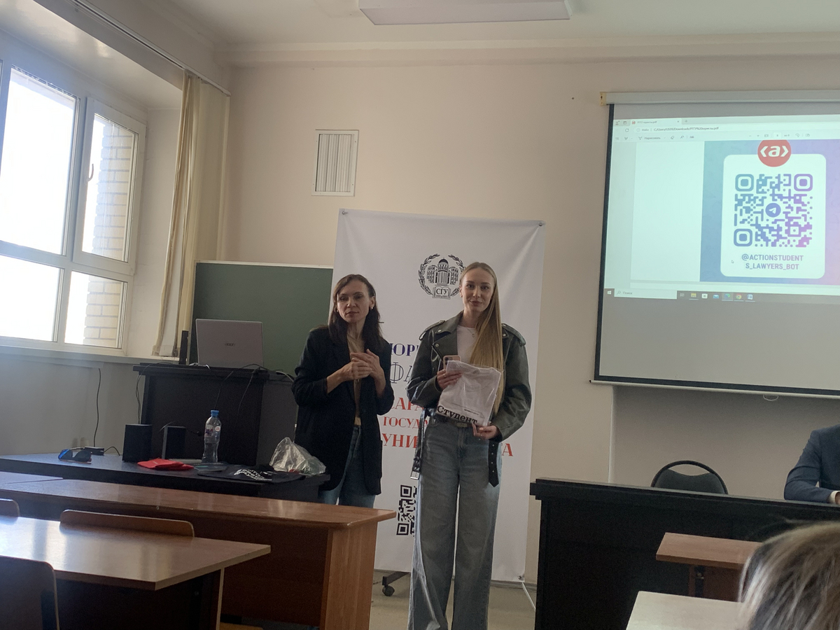 16 апреля в рамках Марафона профессионального развития кафедрой гражданского права и процесса на юридическом факультете была организована встреча студентов 2 и 3 курсов направления подготовки «Юриспруденция» и специальности «Судебная и прокурорская деятельность» с представителем Всероссийского проекта поддержки образования и карьеры "Актион Студенты" Инной Богдановой и практикующим юристом Ильей Романовым (юристом Независимой юридической группы «Стрижак и Партнеры»). Они рассказали студентам, какие навыки нужны современному юристу, чтобы построить успешную карьеру, как выбрать успешный карьерный трек, как важна специализация в юриспруденции, поделились личным опытом карьерного пути, и главное указали студентам на те возможности, которые они могут уже сейчас во время обучения использовать для того, чтобы быть успешным в дальнейшем в профессии.