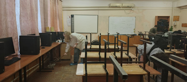 В группе 9271 (классный руководитель Е.С.Сотова) в рамках классного часа проходила уборка кабинета 307.