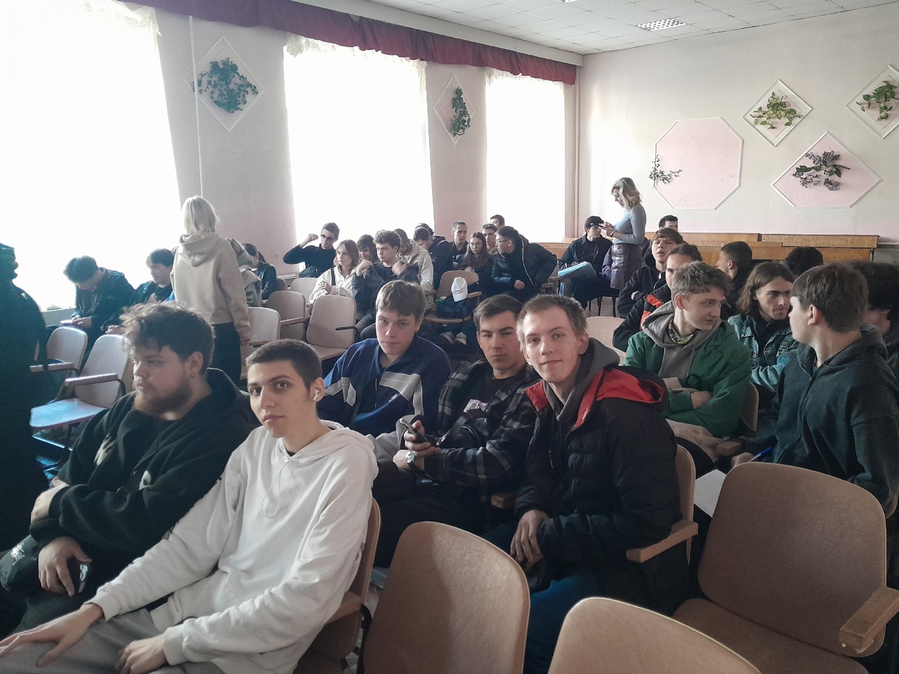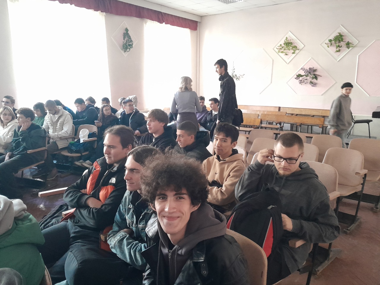 Группы 9471,9473 (классный руководитель Ю.С.Максимова),9472 (классный руководитель Е.Б.Боева), 9461 (классный руководитель Ю.В.Пчелинцева), 9462 (классный руководитель Н.А.Щетинина), 1301,7401 (классный руководитель К.Л.Яковлева), 4401 (классный руководитель Т.Н.Мурылева) были в малом актовом зале на профориентационной встрече с представителями Саратовского высшего артиллерийского командного училища.