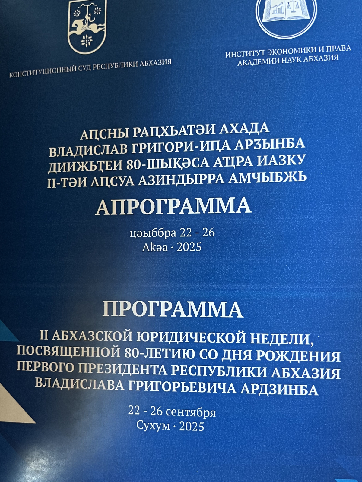25-26 сентября 2025 года прошла IV Международная научно-практическая конференция «Архитектура публичной власти: становление, развитие, перспективы», организованная Конституционным судом Республики Абхазия совместно с Институтом экономики и права Академии наук Абхазии. Конференция стала площадкой для обсуждённая актуальных проблем в области конституционного, административного, международного права, а также для обмена передовым опытом между ведущими учеными и экспертами.