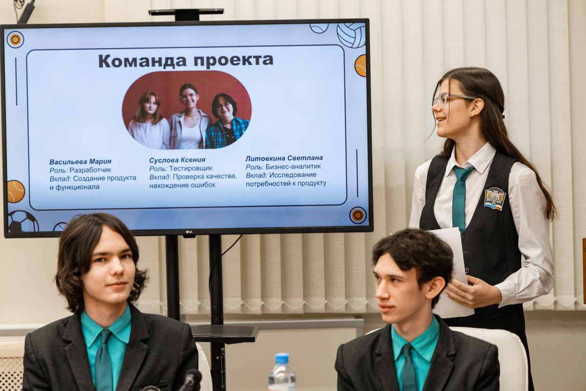Школьники представили пять завершённых проектов, разработанных для решения конкретных бизнес-задач. В реализации проектов участвовали преподаватели кафедры физики открытых систем – А.Б. Адилова, Н.А. Крапивина, А.И. Шабанова.