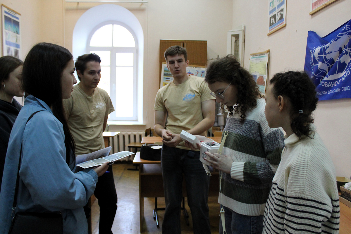 Активисты Молодёжного центра РГО Егор Кагин и Александр Рожков показали, как работают метеорологические приборы, и объяснили принципы измерения температуры, влажности и направления ветра. Старшеклассники узнали, как собранные данные помогают синоптикам прогнозировать погоду.
