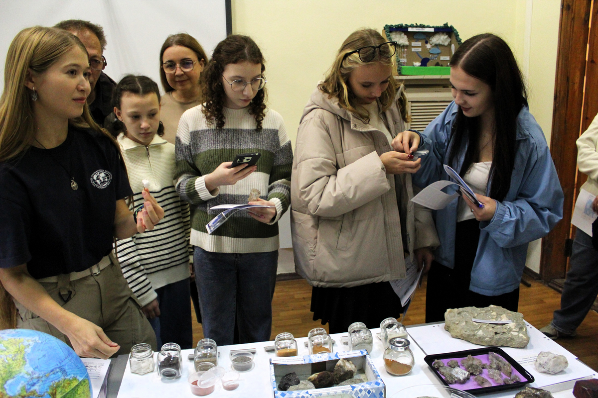 Студентка географического факультета СГУ Анастасия Сороколадова провела занятие по минералогии. Ученики узнали о происхождении горных пород и минералов. Анастасия показала коллекцию образцов и уникальные пески из разных уголков мира: от морских побережий до пустынь. Каждый участник смог рассмотреть песчинки под микроскопом и создать открытку из песка, привезенного из пустыни Сахары.