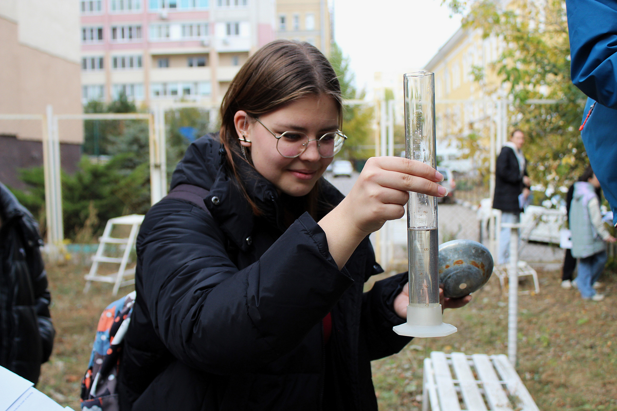 В импровизированной гидрохимической лаборатории студентка географического факультета СГУ Виктория Семикова познакомила ребят с методами химического анализа воды. Участники определяли кислотность, прозрачность и минерализацию образцов из рек, морей и океанов. Особый интерес вызвали пробы воды Северного Ледовитого океана, привезённые из арктической экспедиции на Северный полюс.