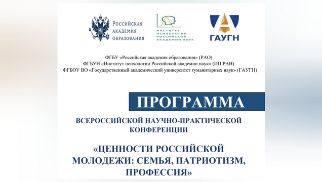 В Российской академии образования 2–3 декабря состоялась Всероссийская научно-практическая конференция «Ценности российской молодежи: семья, патриотизм, профессия». Соорганизаторами конференции выступили Институт психологии Российской академии наук и Федеральный научно-исследовательский социологический центр Российской академии наук.