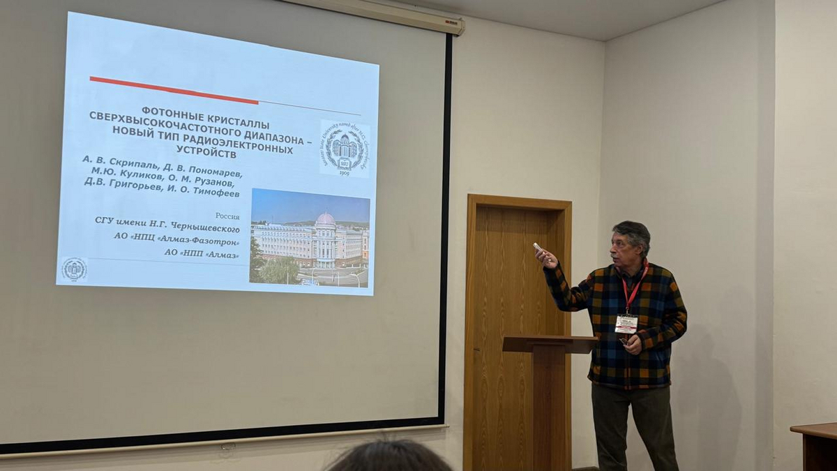 Заведующий кафедрой физики твёрдого тела, профессор А.В. Скрипаль представил результаты исследований в области СВЧ-электроники на первой научно-технической конференции «Алмаз-Фазотрон 2025». Форум проходил с 21 по 22 октября на базе научно-производственного центра.
