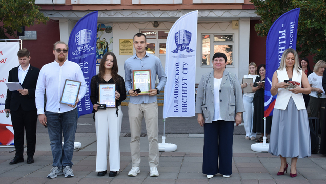 Знаковым событием праздника стало вручение наград лауреатам первого внутривузовского конкурса «Студент года». Церемонию награждения провели директор института А.В. Шатилова, заместитель директора по воспитательной и социальной работе Л.М. Руднева и председатель профсоюзной организации Е.А. Власова. Его лауреаты получили заслуженные награды: дипломы победителя, подарки от профкома БИ СГУ и экскурсионную поездку в г. Саратов. В номинации «Лучший студент в научно-исследовательской деятельности» победу одержала Виктория Масленникова (филологический факультет), в номинации «Лучший студент в спортивной деятельности» отличилась Светлана Гусейнова (психолого-педагогический факультет), в номинации «Лучший студент в общественной деятельности» был отмечен Платон Алёшкин (филологический факультет), в номинации «Лучший студент в культурно-творческой деятельности» победительницей стала Мария Исайкина (психолого-педагогический факультет). Среди призеров и участников конкурса были названы: Константин Ильин, Александра Шилина, Маргарита Кутузова, Артем Гребнев, Карина Каримова и Алена Ряхина.