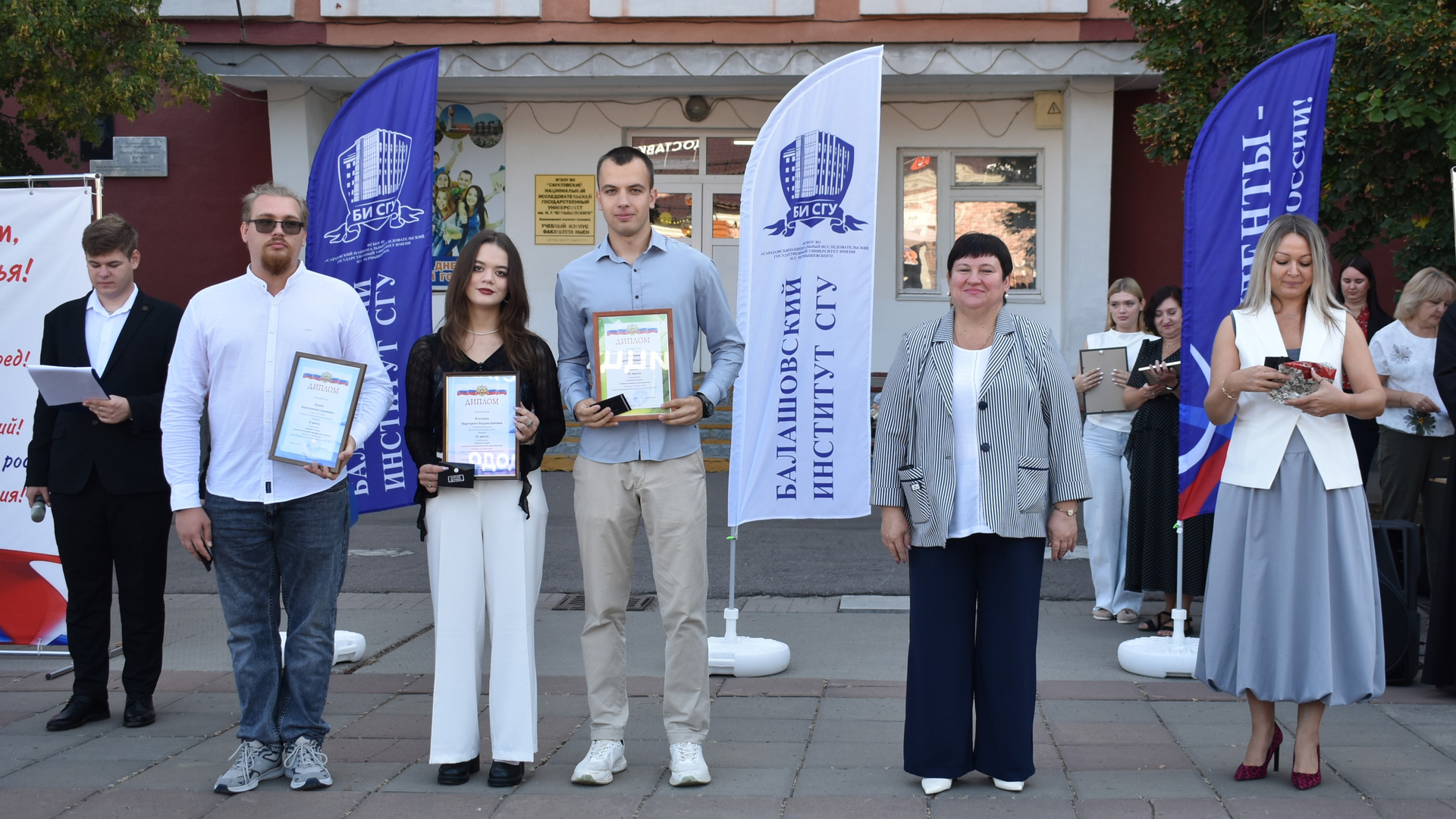 Традиционно в рамках праздничной линейки состоялось награждение победителей конкурса «Лучший преподаватель Балашовского института СГУ». Подводя его итоги, заместитель директора по учебной и научной работе И.Г. Андреева сказала: «Этот конкурс стал доброй традицией, позволяющей педагогам продемонстрировать высокий профессионализм, творческий подход и любовь к делу». Заслуженные награды победителям, среди которых доцент кафедры биологии и экологии А.Н. Володченко (1 место), доценты кафедры физической культуры и безопасности жизнедеятельности О.В. Бессчетнова (2 место) и Н.В. Медведева (3 место), вручила А.В. Шатилова. Жюри отметило еще трех участников конкурса – это доцент кафедры физической культуры и безопасности жизнедеятельности Е.А. Цыглакова, доцент кафедры филологических дисциплин Е.И. Алиференко и доцент кафедры математики, информатики, физики А.Н. Сорокин.