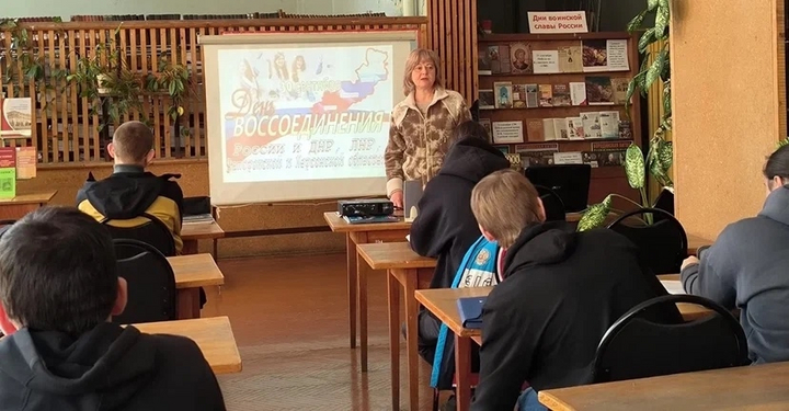 В библиотеке нашего колледжа радиоэлектроники имени П. Н. Яблочкова прошел классный час, посвященный Дню вхождения освобожденных территорий в состав России. Более 60 студентов собрались, чтобы узнать больше о значении этой важной даты и ее влиянии на нашу историю.