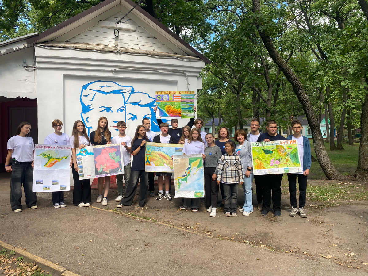 В начале географической смены стартовал конкурс проектов “Картографический образ природных объектов Российской Федерации”, где 6 команд получили свое творческое проектное задание. 28 августа состоялась защита созданных на протяжении смены карт, где победители получили дипломы и призы от Русского географического общества.