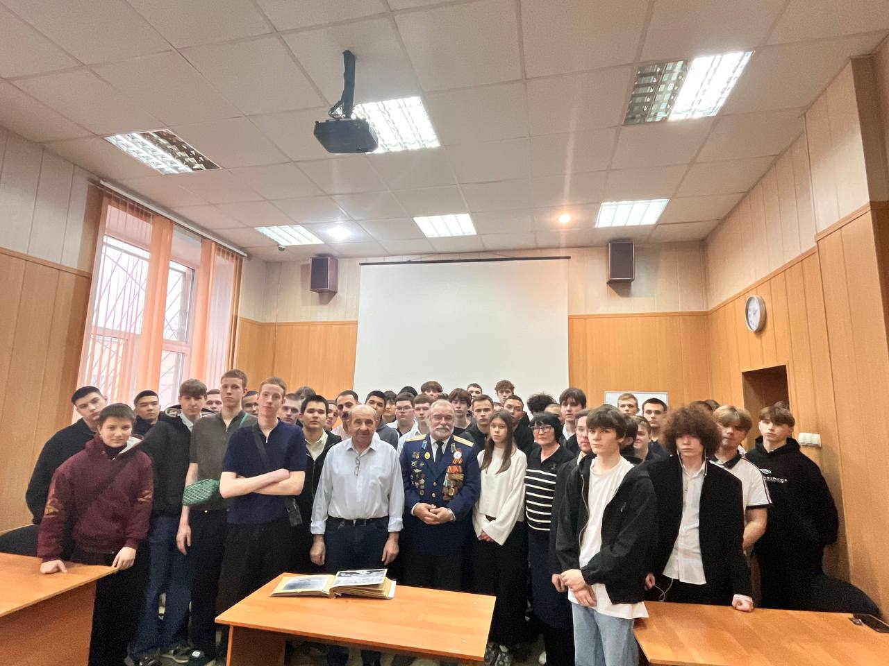 09.12.2025г. в геологическом колледже прошла встреча студентов первого курса, в том числе иностранных граждан, с Лапиным Владимиром Петровичем, майором в отставке, военным летчиком 1 класса, ветераном боевых действий в Афганистане. Владимир Петрович за мужество, проявленное в выполнении интернационального долга, был награжден орденом Красной Звезды, орденом За службу Родине в ВС СССР 3 степени.