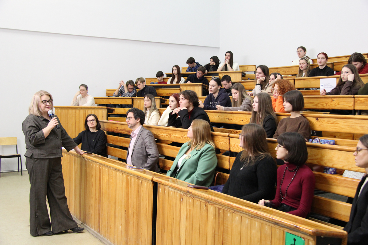 После этого ведущие предоставили слово доцентам кафедры общего литературоведения и журналистики И. В. Бибиной и А. В. Раевой, которые руководили практикой у обучающихся на 3 и 4 курсах.