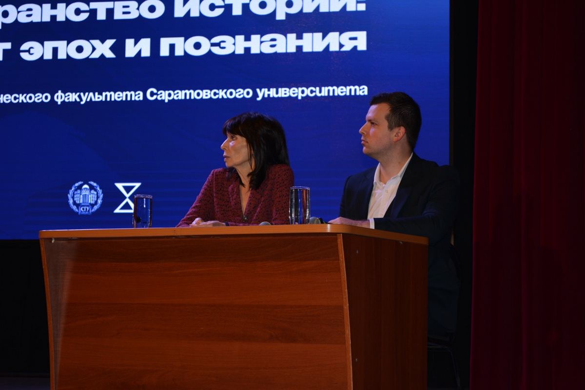 На секции «Индивидуальность историка и бытование научных сообществ историков в прошлом и настоящем» под председательством профессора кафедры истории древнего мира В.И. Кащеева были представлены доклады о жизни и трудах Н.А. Троицкого: о его концепции Отечественной войны 1812 г. (В.Ю. Захаров и С.В. Левин), об особенностях его художественной прозы (А.М. Майоров) и эпистолярного наследия (Ю. В. Варфоломеев, Ю.Г. Степанов). В контексте политической истории России прослежена научно-педагогическая деятельность И.В. Герчикова в Москве и Саратове (Е.С. Носова). Был представлен творческий портрет видного бельгийского историка Анри Пиренна, определен круг ученых, входивших в его научную школа, и показано их влияние на развитие европейской урбанистики (А.А. Майзлиш). Рассмотрена деятельность академических мини-сообществ: кафедры истории древнего мира Саратовского университета в 1935–2025 гг. (В.И. Кащеев) и археологов Саратова во второй половине 1940-х гг. (Н.М. Малов). Очерчен круг проблем, связанных с изучением битвы на реке Ворскле в 1399 г. (В.А. Волков) и дан критический обзор работ С.В. Зубова о партии «Народная воля» (А.А. Воронихин). Кроме того, заслушаны и обсуждены доклады об учебниках саратовских историков, написанных для средней школы в конце ХХ – начале XXI в. (В.Г. Петрович) и о встречах выпускников исторического факультета СГУ по документам группы «Поиск» из ГАСО (Р.И. Ишмухамедова). Все представленные на секции доклады вызвали многочисленные вопросы слушателей и оживленную дискуссию.
