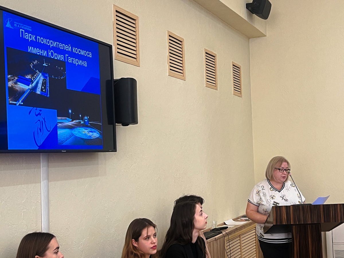 Третьим спикером стала Рожкова М.А., администратор Парка покорителей космоса имени Ю.А. Гагарина, которая выступила с докладом «Парк покорителей космоса как центр притяжения туристов с научно-популярными целями». Мария Анатольевна рассказала о том, что в Парке на постоянной основе реализуются образовательные мероприятия, что интерес к объекту обеспечивает ежегодный прирост посетителей. В перспективах у Парка строительство новых зданий и сооружений, размещение экспозиций, связанных с современными достижениями космической индустрии, такими как образцы роботов, спутников и марсианских модулей. Рабочая группа студентов 1 курса н.п. «Туризм» Колесниченко М.А., Джафарова Л.Р., Новожилов Д.В. и Шейко М.В. разработали цикл интерактивных мастер-классов («Собери свой спутник», «Роботы на Орбите» и др.), которые позволят гостям освоить некоторые технологии космической инженерии и робототехники.