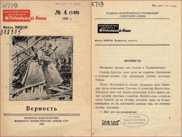 Первый роман Ф. Ниязи, «Вафо» («Верность»), воплощает в себе эти качества; первый том (1949) в основном посвящён фронту, а второй том (1958) – тылу. Это, прежде всего, рассказ о храбрых поступках солдат на войне, особенно во время ожесточённых боёв в донских степях и под Сталинградом в 1942 г. За этот роман в 1976 г. Фатех Ниязи был удостоен звания лауреата премии им. А. Фадеева, учреждённой Министерством обороны и Союзом писателей СССР.