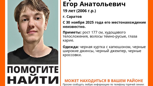 Молодой человек ушел из дома 30 ноября и до сих пор не вернулся, сообщает поисковый отряд "ЛизаАлерт" в социальных сетях.