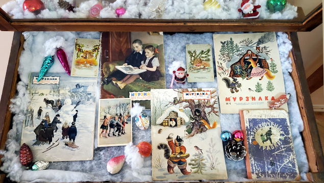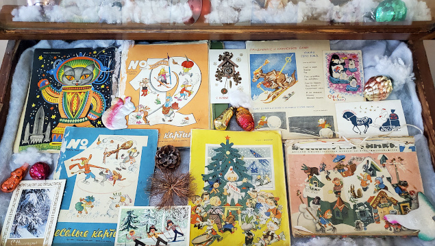 «В ожидании Нового года» – так называется небольшая выставка-импровизация, подготовленная сотрудниками отдела редких книг и рукописей. Старинные открытки и детские книги из семейной библиотеки, а также журналы. Журнал «Мурзилка» издается с 1924 г. по настоящее время. «Весёлые картинки» выходят с 1956 г. Лучшие детские писатели и художники работали в этих журналах. Разнообразны рождественские и новогодние открытки прошлых лет. Дореволюционные открытки поздравляют с Рождеством Христовым. На них изображались зимние пейзажи, храмы. Советские открытки 1960-х гг. отражают свою эпоху.