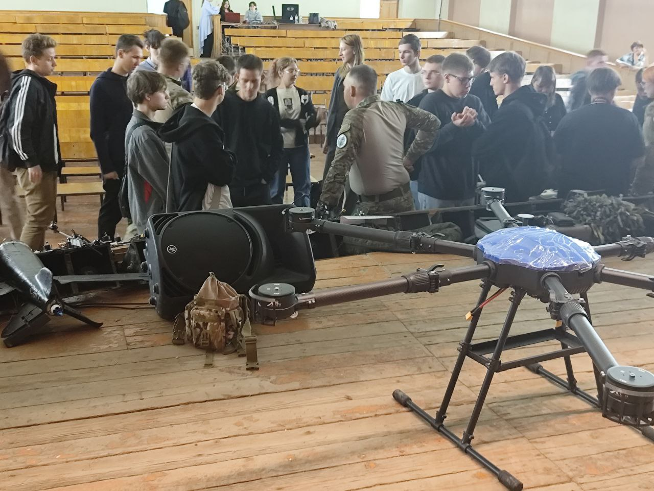Олег Михайлович и его товарищи рассказали о трудных боевых ситуациях и о том, как удалось с ними справляться, о мужестве и героизме сослуживцев, о патриотическом духе и поддержке со стороны россиян. Также были представлены образцы БПЛА, как российские, так и трофейные. Ребятам рассказали об их особенностях, дали возможность попробовать себя в роли операторов БПЛА на симуляторе, желающие примерили обмундирование.