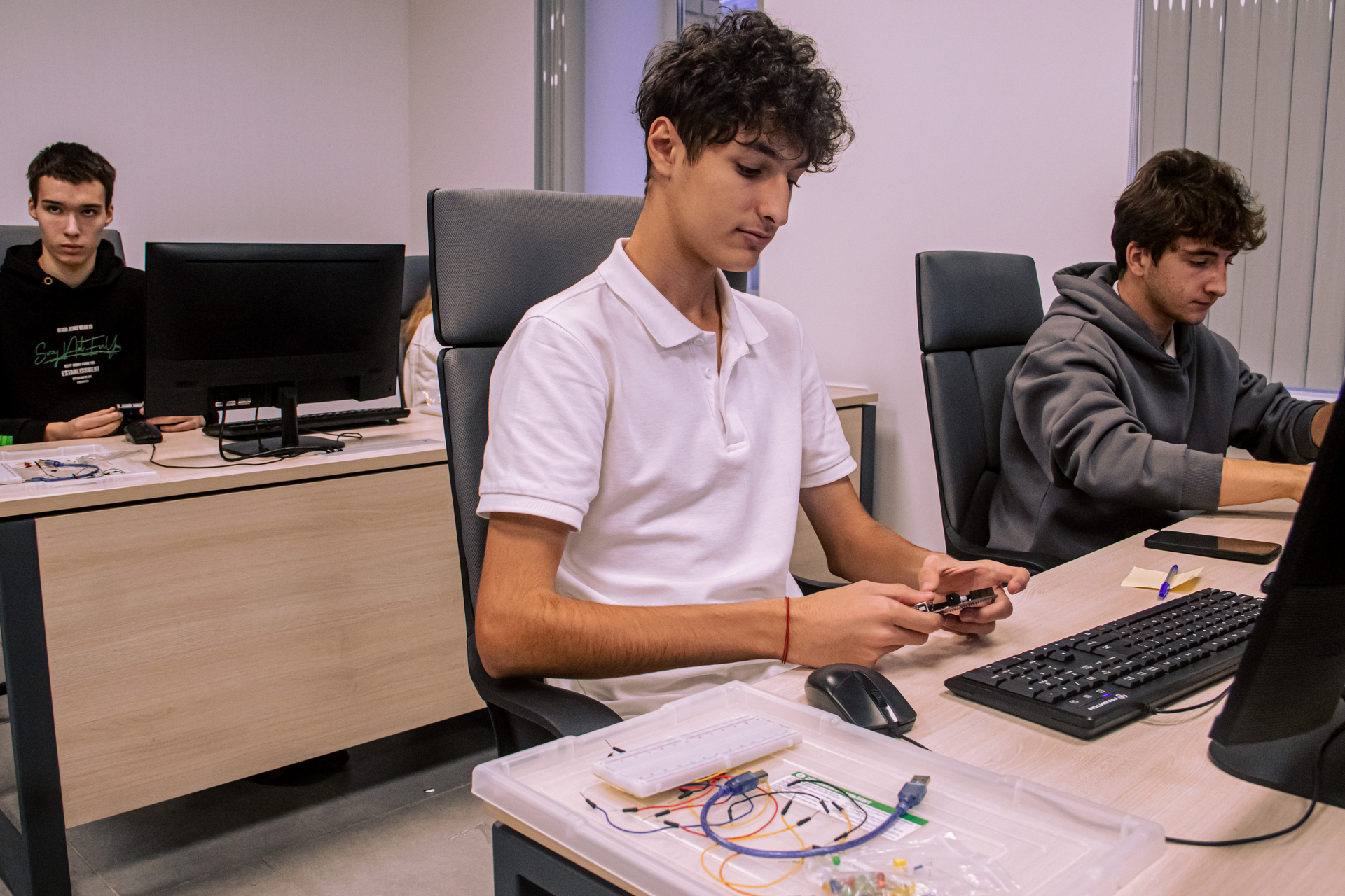 После лекции школьники и их студенты-наставники разделились на команды. При этом со старшеклассниками работали не только преподаватели, но и обучающиеся СГУ. Каждый участник ШТЛ смог посетить занятия в трёх параллельных группах.