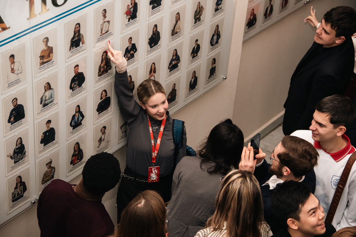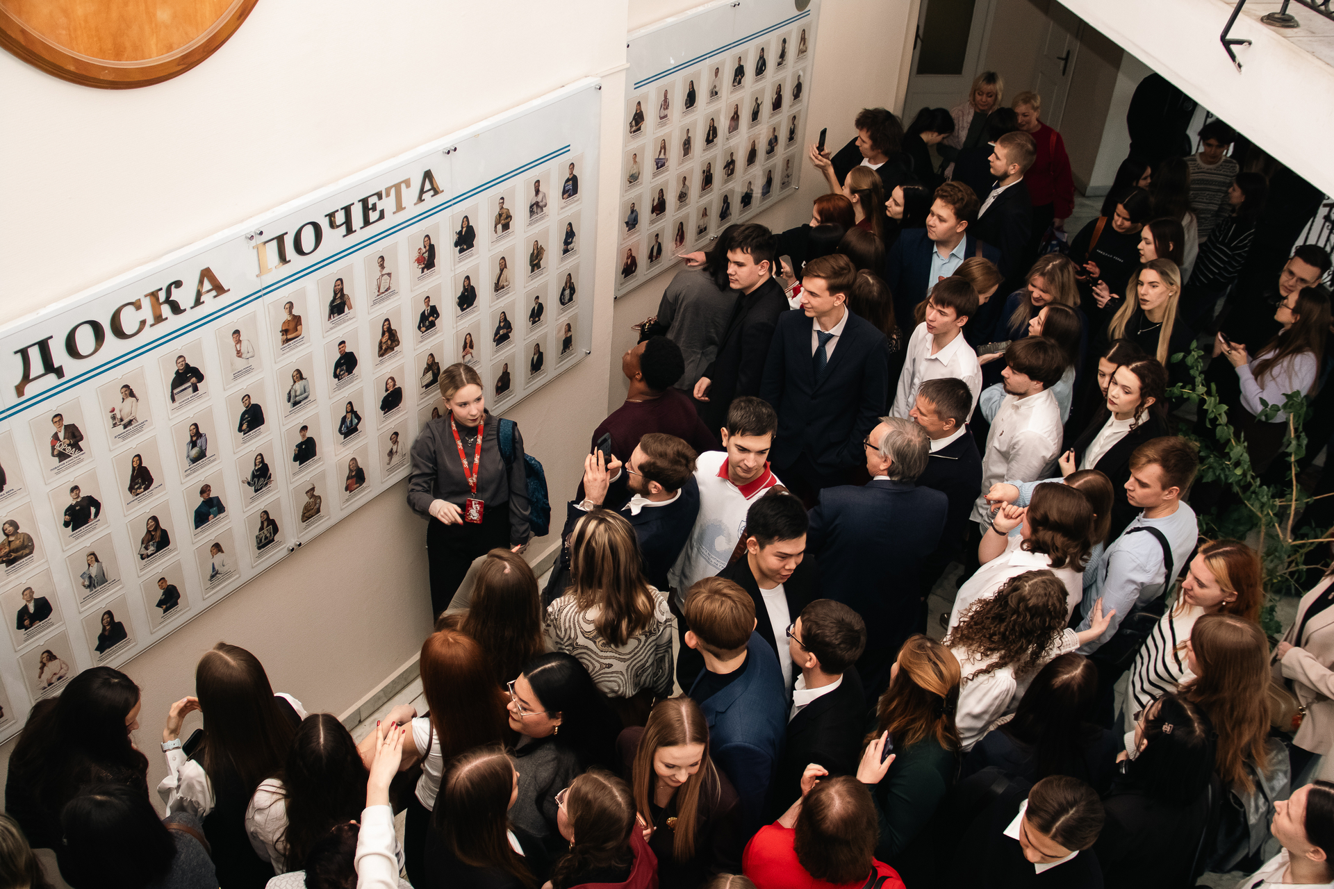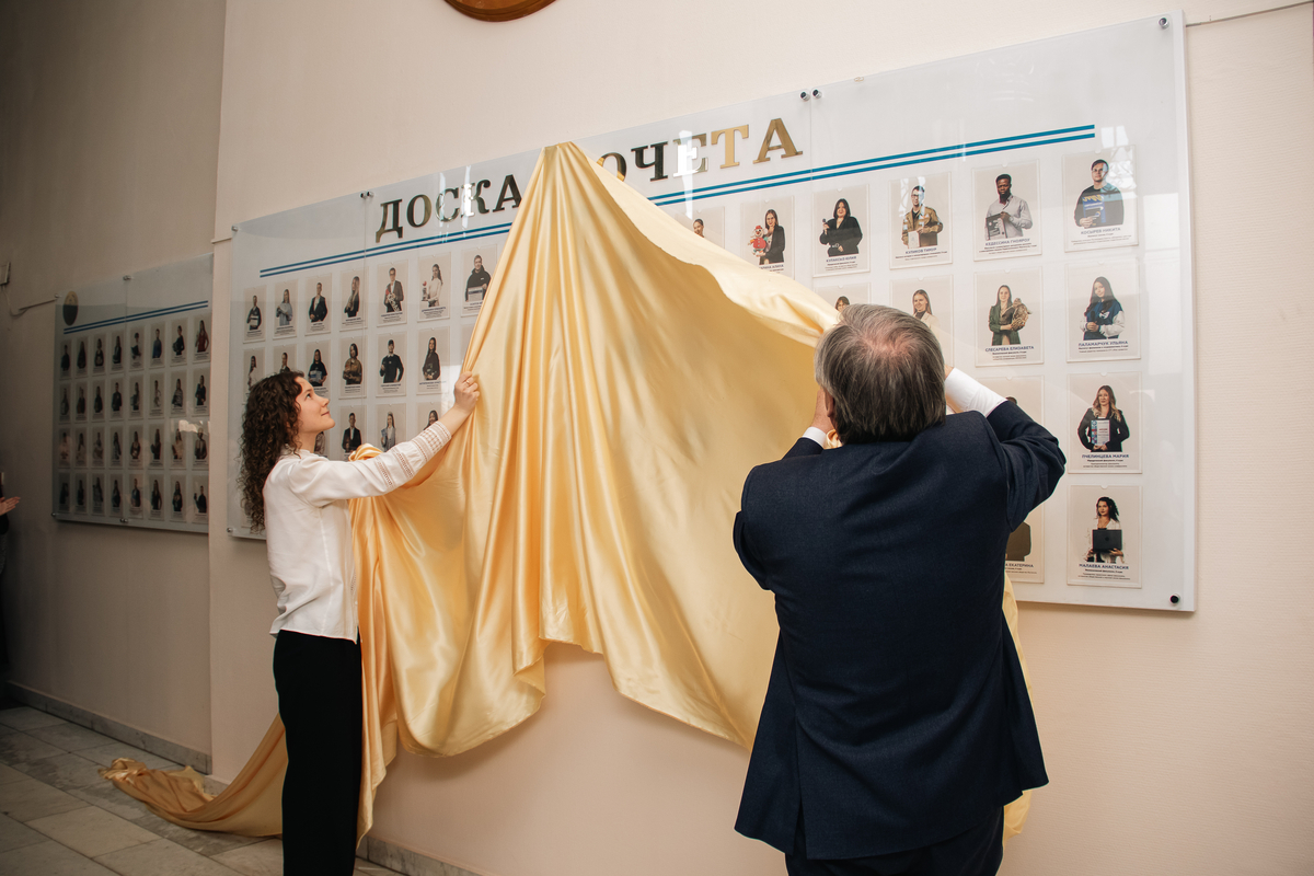 В X корпусе торжественно открылась обновлённая студенческая Доска почёта. На ней размещены портреты 128 лучших студентов вуза, которые проявили себя в учёбе, науке, творчестве, спорте, волонтёрстве, самоуправлении и медиа.